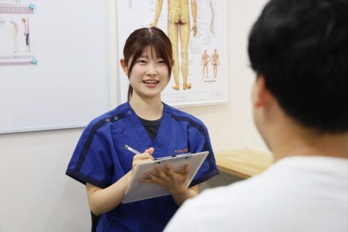問診票をお渡しいたしますので、ご自身の今の状況(どこがいつから痛いのか、痛む理由など)を分かる範囲でかまいませんので、簡単にご記入ください。 -