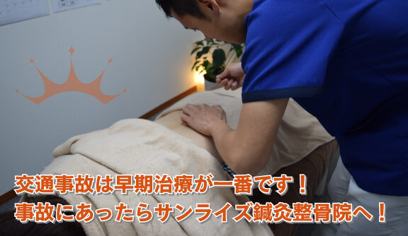 交通事故に遭われたらすぐにサンライズ鍼灸鍼灸整骨院へお越しください!