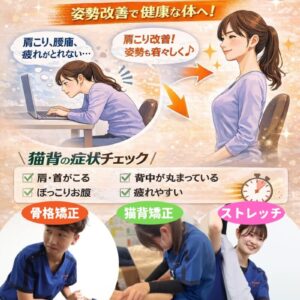 •猫背矯正で丸まった背中を正しい位置へ
