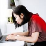 前のめり姿勢が続くことで首に負担が集中。ひどくなると頭痛やめまいにつながり、仕事のパフォーマンスにも影響します。
