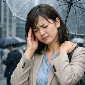 オフィス街では、雨の日に頭痛・首の重だるさ・腰の違和感を訴える方が増える傾向があります。気圧の変化や冷え、濡れた足元による体温低下が、自律神経のバランスを乱し、筋肉をこわばらせる原因に。さらにデスクワークで同じ姿勢が続くと、症状は悪化しやすくなります。